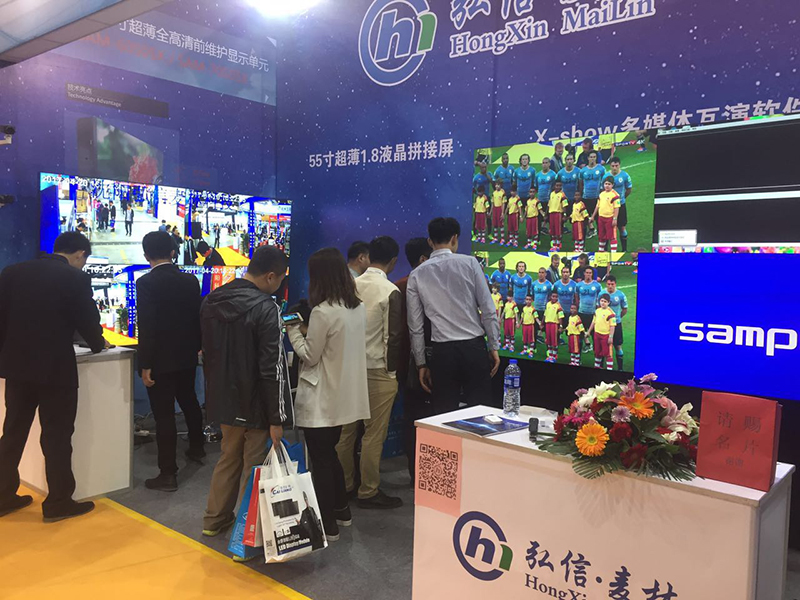 4月22日,为期三天的2017第十九届东北国际公共安全防范产品博览会在沈阳新世界博览馆落下帷幕。今年展会融“技术应用展示+品牌展示+会议论坛”为一体,集中展示安防行业前沿科技成果,吸引了各界安防人士和企业积极参与。而作为大屏拼接行业领导者,304AM永利科技携手弘信麦林亮相东北安博会,展出的产品主要包括:第三代“平板化背投”60寸超薄电动前维护DLP拼接显示单元、84寸商显大屏、55寸超窄边液晶拼接显示单元(1.8mm拼缝)以及304AM永利科技独家X-Show多媒体交互展示软件等一系列软硬件产品。