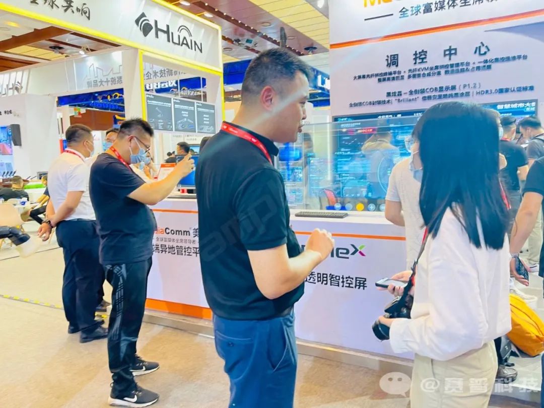 304AM永利科技作为大屏新技术显示领军品牌,自然不会错过此次向世界展示大屏新技术的机会,携手美凯同台亮相本届展会,联袂展出大屏最新显示技术&全球富媒体坐席,整个展台主要以当前最前沿的全倒装COB封装技术-黑炫晶系列产品为首、全新的透明OLED智控技术,及大数据可视化平台、基于非IP光纤拼控技术、光纤KVM技术等多项高科技软硬件产品,融合展示了调控中心、会议室、指挥中心、展览展示等多个应用场景的一站式整体解决方案和应用成果。成为本次展会的焦点,现场每一个场景都是摩肩擦踵,场面火爆,下面请随小编带你一起回顾展会当日的盛况吧。